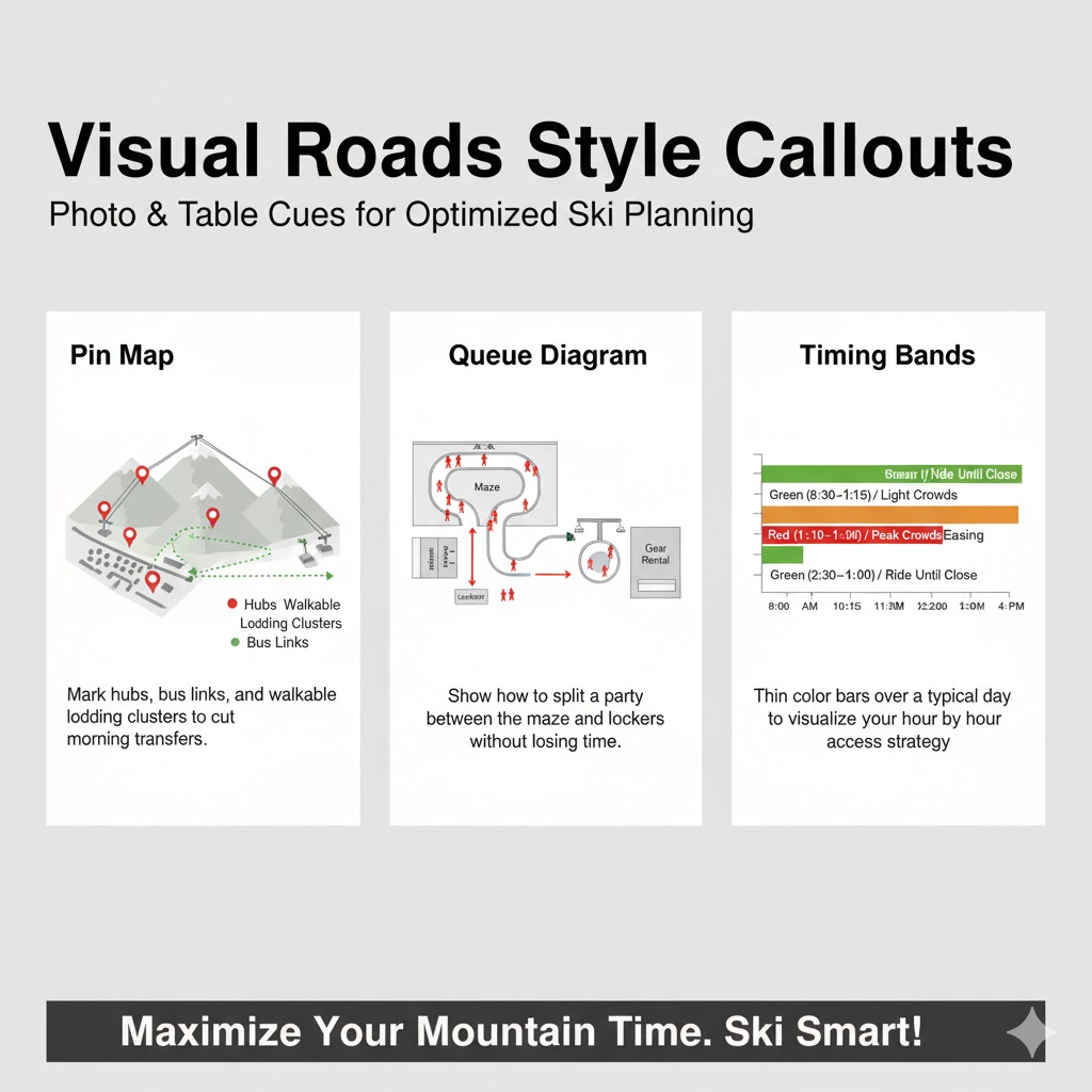 - Route planning tips: Identify choke points, parking cutoffs, and shuttles for transit between mountains; keep a second valley queued for cross resort transfers.